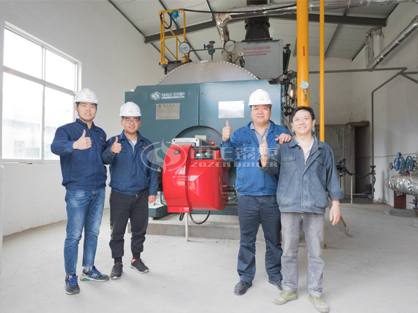 其中,如皋市丁堰紡織有限公司在2017年7月向中正鍋爐訂購了一臺4噸的WNS系列燃氣蒸汽鍋爐(WNS4-1.25-Q),一直以來都運行穩定。此次,中正工程師進入鍋爐房現場,從鍋爐外觀到內部運行進行了一系列的檢查與保養,詳細記錄了鍋爐運行的相關數據。在檢查過程中,中正鍋爐工程師通過觀察火焰顏色和煙氣分析儀的測量,發現鍋爐排煙處O2的含量偏大,立即對燃燒器的風氣配比進行了調節,直至煙氣中O2和CO含量都降到典型值。